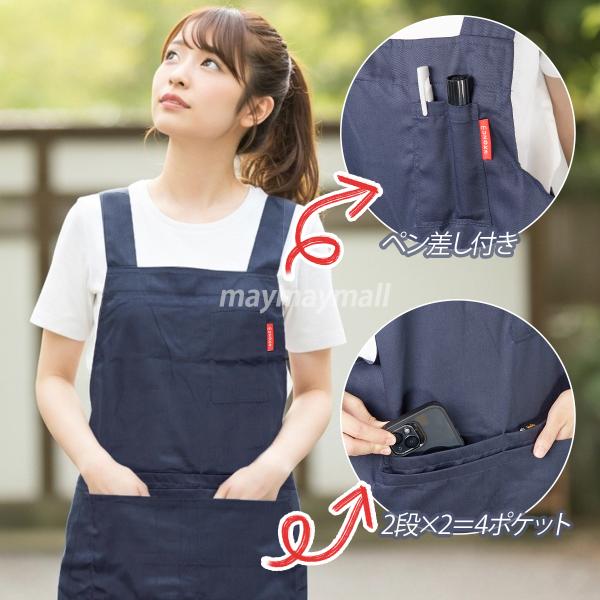 エプロン 無地 H型 4色 ショート ロング 7ポケット レディース 家庭用 業務用 サイズ調整 ガーデニング 飲食店 ユニフォーム