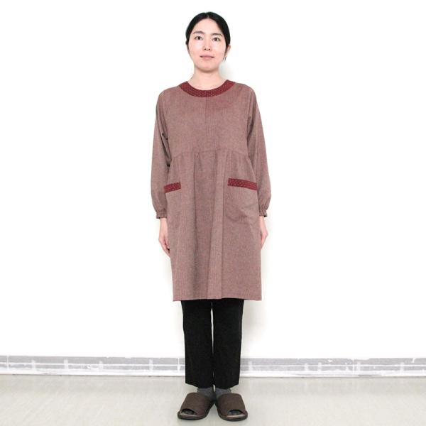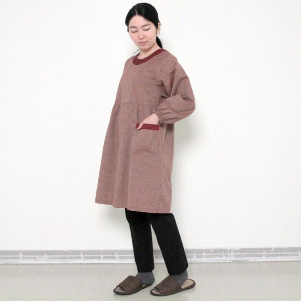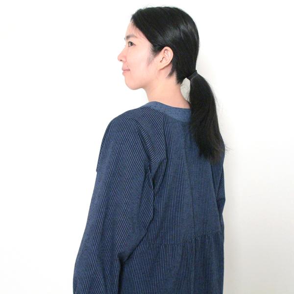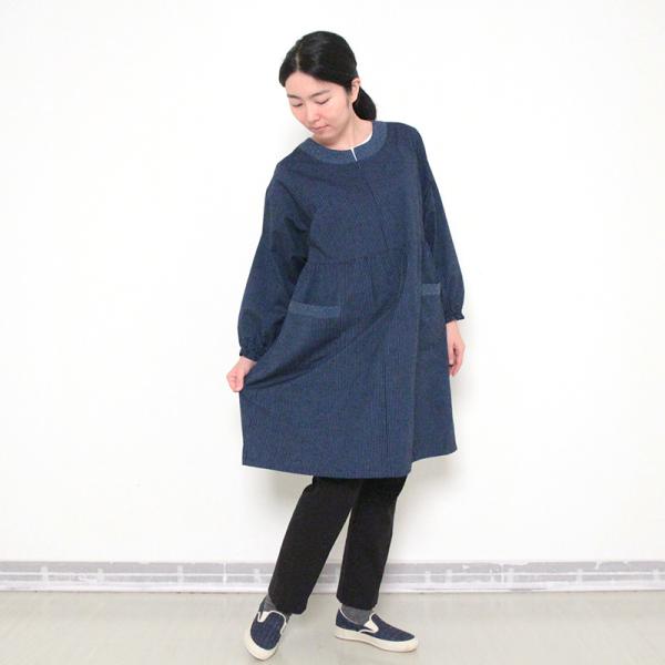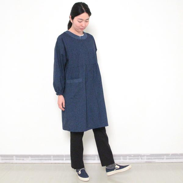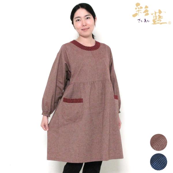 彩藍 小縞スモック 赤 ブルー 綿100% レディース おしゃれ エプロン スモック 春 秋 冬 割烹着 木綿 ギフト 宮田織物 シニア 贈り物 プレゼント 母の日
