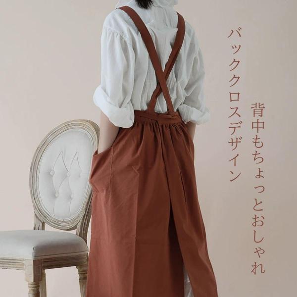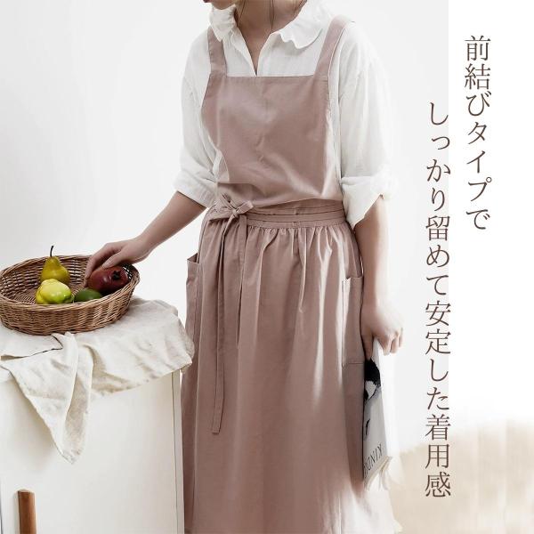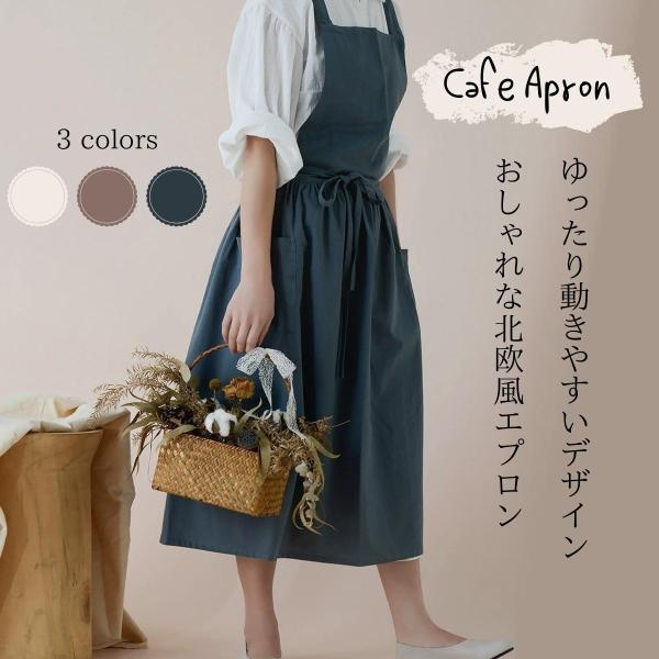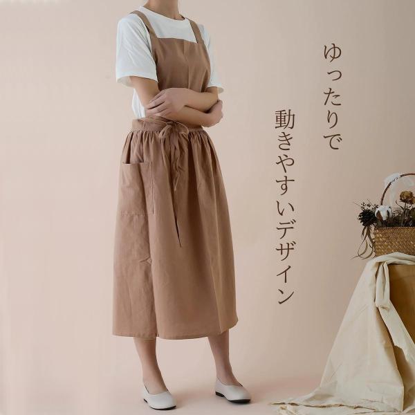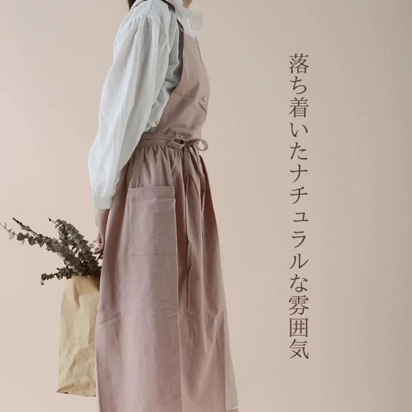 おしゃれ北欧風 2wayコットンリネンエプロン 綿痲 ロングワンピース風エプロン ナチュラル 体型カバー