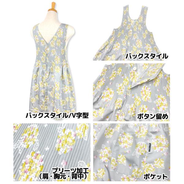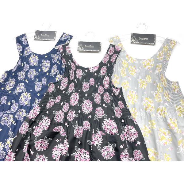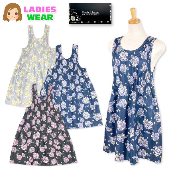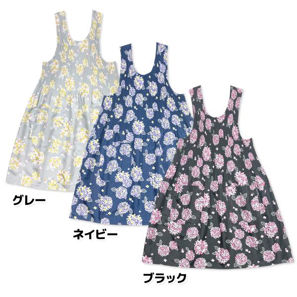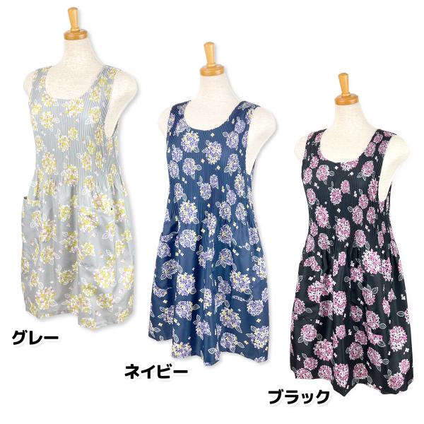 送料無料 エプロン 婦人 レディース ラン型 チュニック ワンピース 紫陽花柄 プリーツ加工 2Pポケット M-L フリーサイズ sl-0705