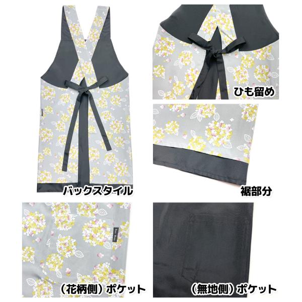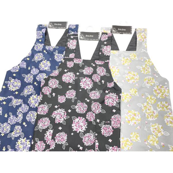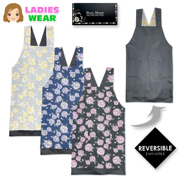 送料無料 エプロン リバーシブル H型 婦人 レディース 紫陽花アジサイ柄 クロス後ろ紐止め 4Pポケット M-L sl-0709