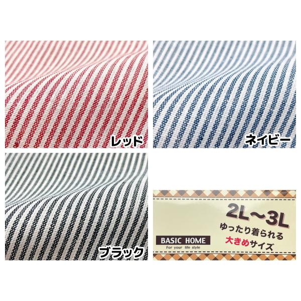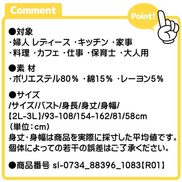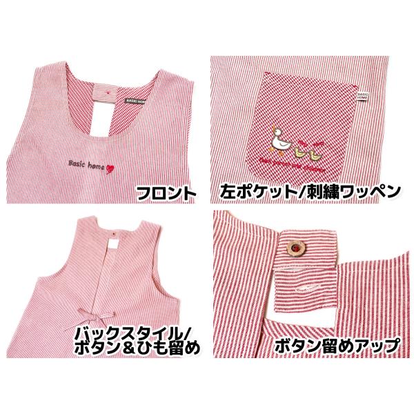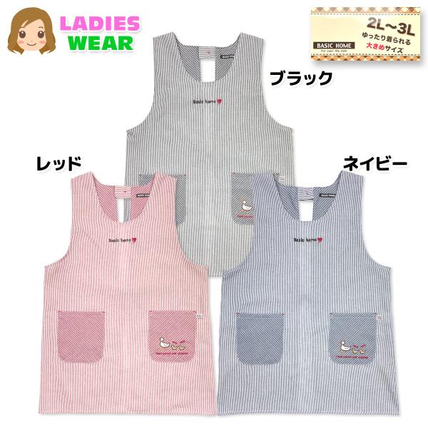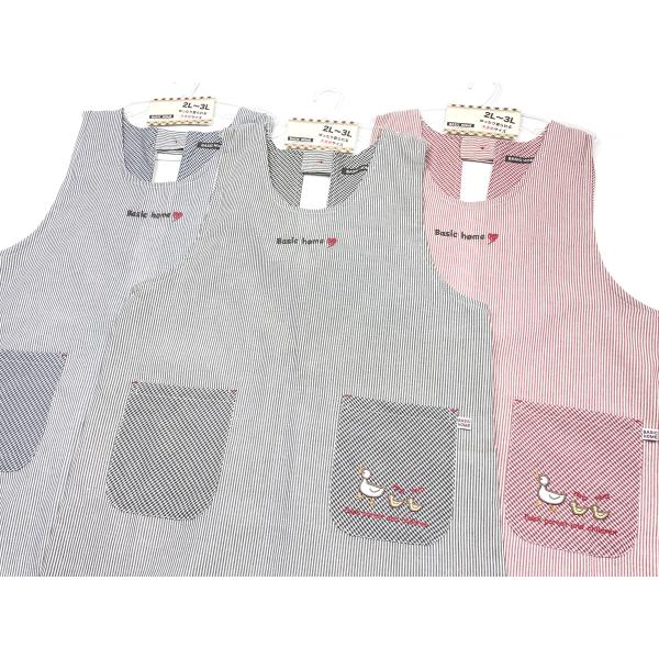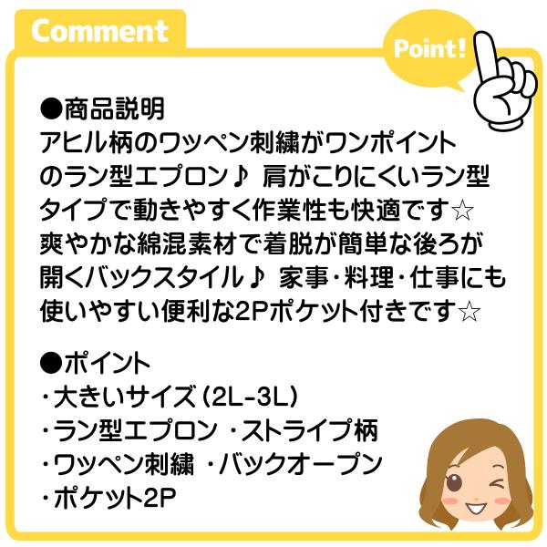 送料無料 大きいサイズ エプロン ラン型 チュニック 婦人 レディース アヒル刺繍 ストライプ柄 綿混 2Pポケット 2L-3L sl-0734
