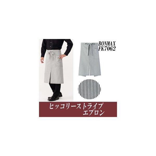 エプロン ヒッコリーストライプカフェエプロン ワークエプロン 飲食店 アミューズメント 施設 サービスウェアFK7062 グレー×ホワイト