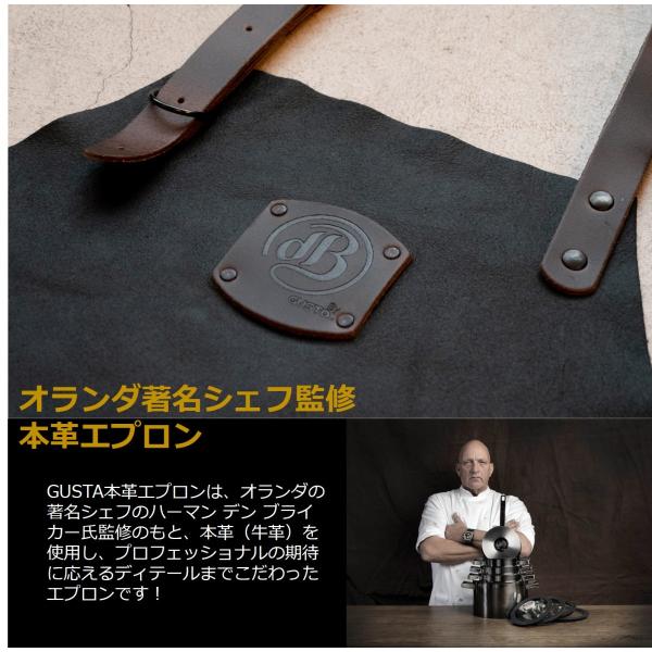 送料無料 レザーエプロン メンズ 男性用 本革 牛革 首掛け 欧州 ブランド シェフ 飲食店 美容師 職人GUSTA(グスタ)