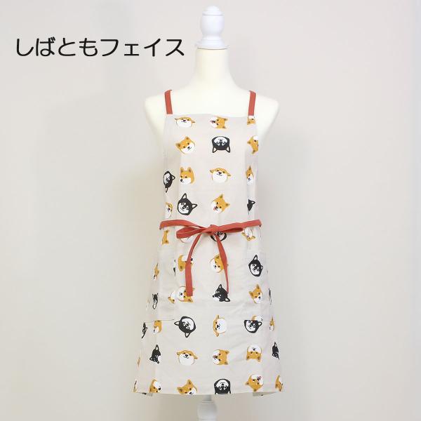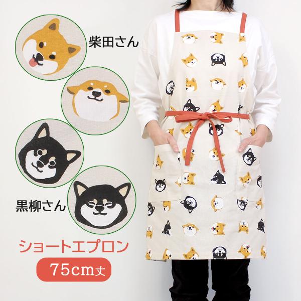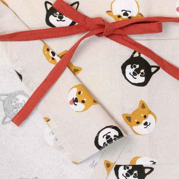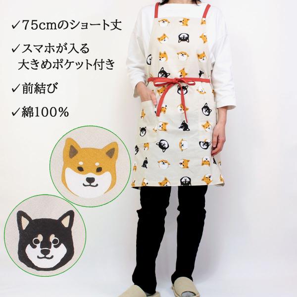 エプロン 犬柄 おしゃれ 柴犬 犬 ショート丈 レディース 小学生 中学生 前結び 綿 かわいい ショートエプロン しばともフェイス 920651