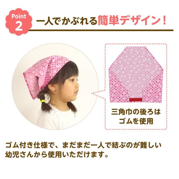 三角巾 子供用 ゴム付き 星 ハート 水玉 ピンク ブルー ギンガムチェック 家庭科 調理実習 クッキング キッズ 幼児 男の子 女の子 入園入学
