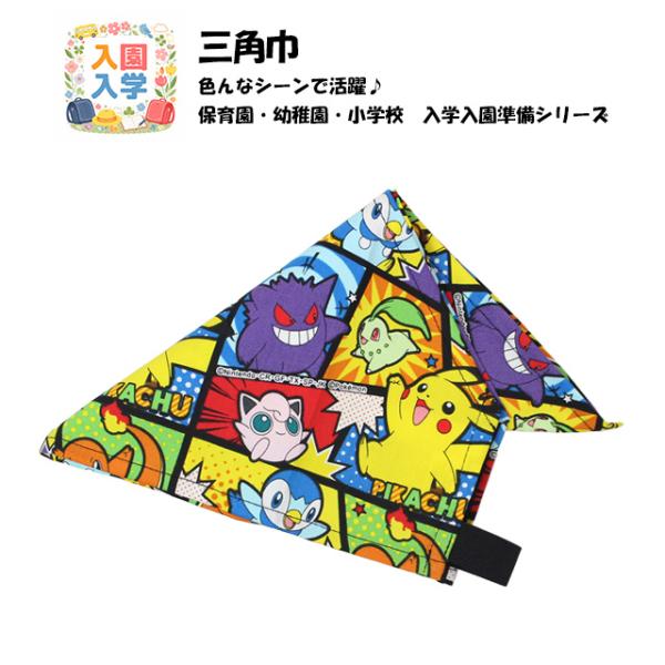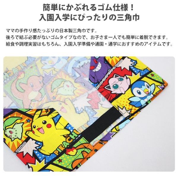 三角巾 ゴム付き 男の子 学校 給食 エプロン 幼稚園 小学校 入園入学準備 ポケットモンスター キャラ グッズ 子供 日本製