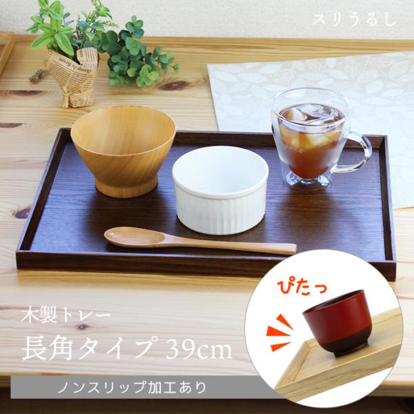 トレー カフェ 木製 お盆 長角膳 スリうるし 39cm ノンスリップ加工 001-183