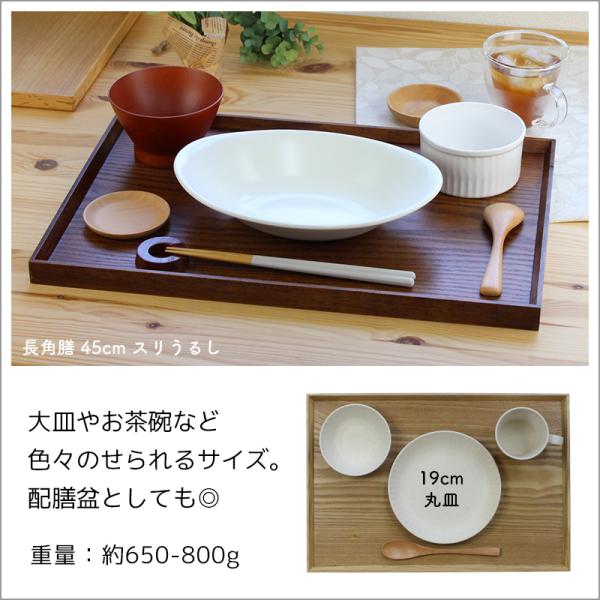 トレー カフェ 木製 お盆 長角膳 ナチュラル 45cm ノンスリップ加工 001-674