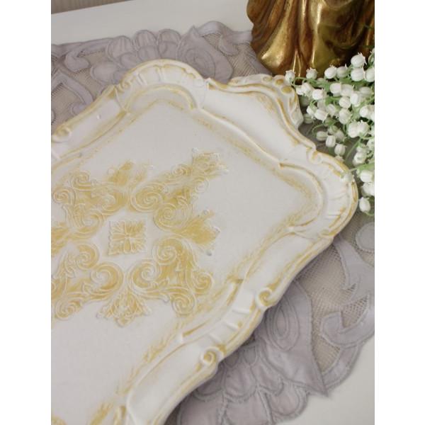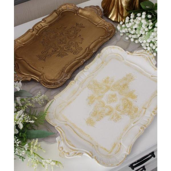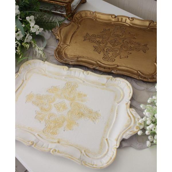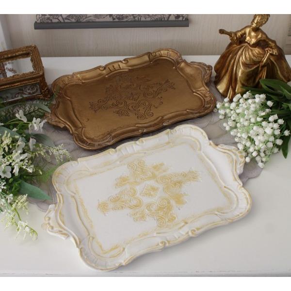 ディスプレイトレー トレー 小物置き レクトトレイ ハンドルトレー アクセサリートレイ 横長(ホワイト099 ゴールド100) フレンチトレー アンティーク アンティ