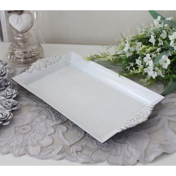 シャビーレクトトレー トレイ ホワイト トレー 白 長方形 プレート トレー アンティーク風 antique アンティーク ディスプレイトレイ フレンチトレー シャビーシ
