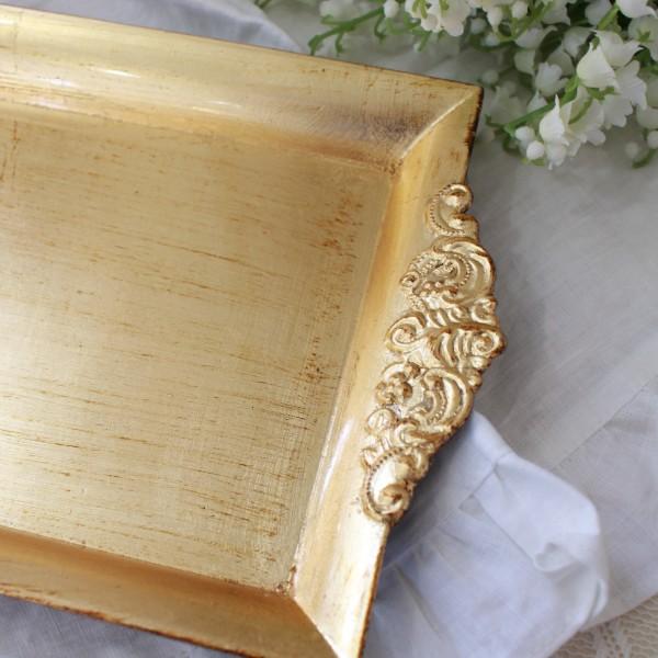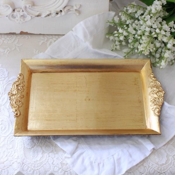 シャビー レクトトレー トレイ ゴールド トレー 長方形 プレート トレー アンティーク風 アンティークゴールド アンティーク ディスプレイトレイ フレンチトレー