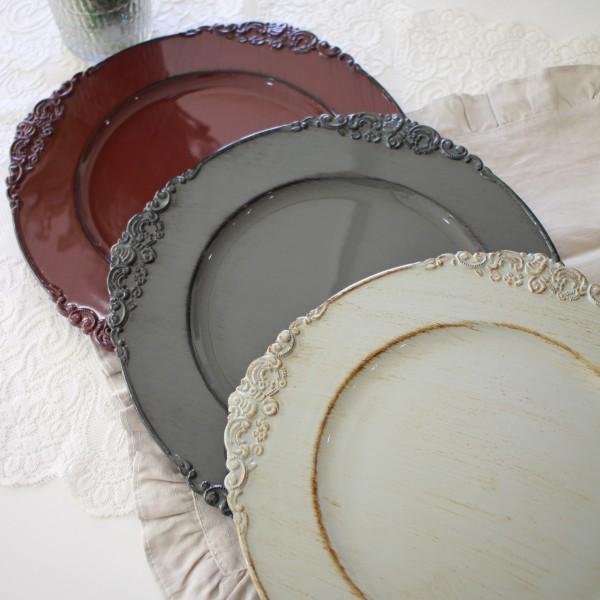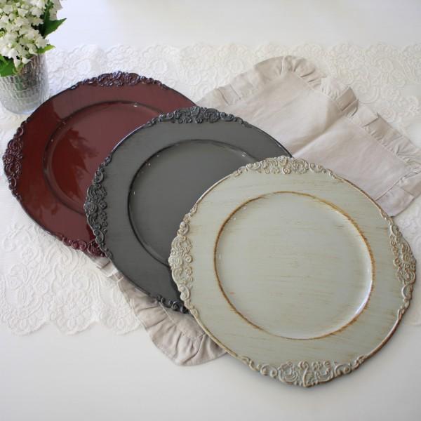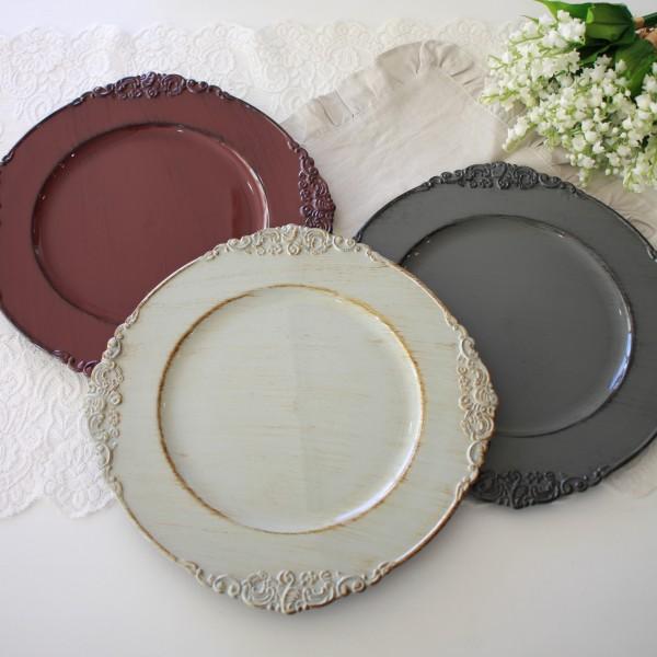 シャビー ラウンドトレー トレイ プレート インテリアトレイ 丸 ライトグレイ ダークグレイ ワイン アンダープレート ディスプレイ トレー アンティーク風 フラ