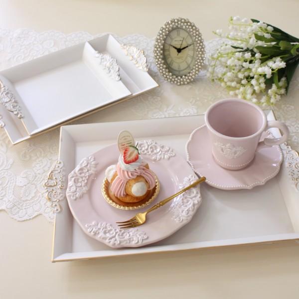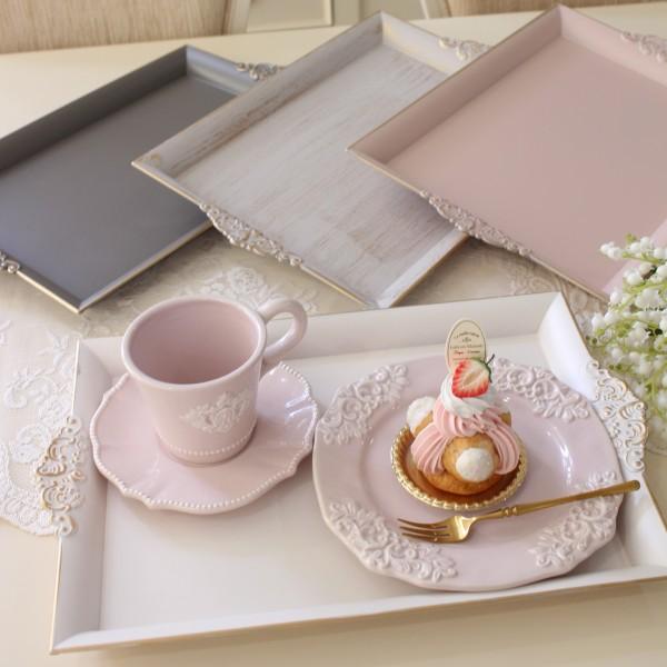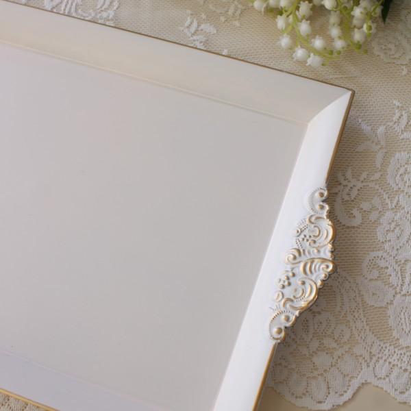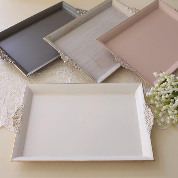 トレイ お盆 レクトトレー おしゃれ Lサイズ おぼん トレー ホワイト ピンク グレー ゴールド 可愛い アンティーク風 フレンチテイスト クラシック 姫系 輸入雑