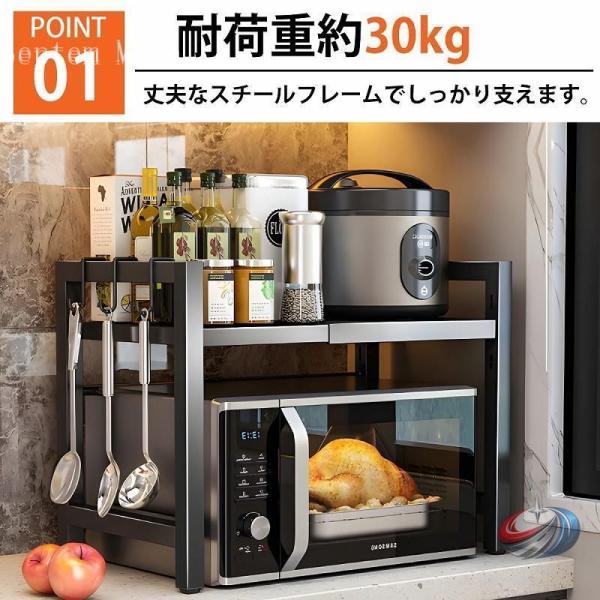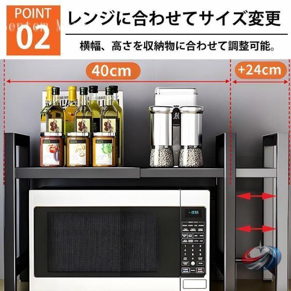 キッチンラック レンジ台 伸縮 レンジ上収納 ゾンチー 幅40-64cmで調整しやすく 大型レンジにも対応しやすい省スペースラック