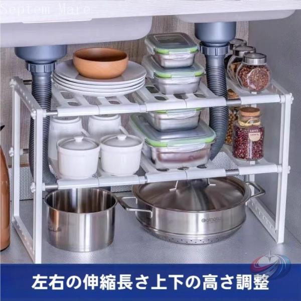 キッチンラック シンク下を有効活用できる伸縮フリー棚 ゾンチー 洗面台下にも使える組立式で収納力を高める便利ラック 省スペース