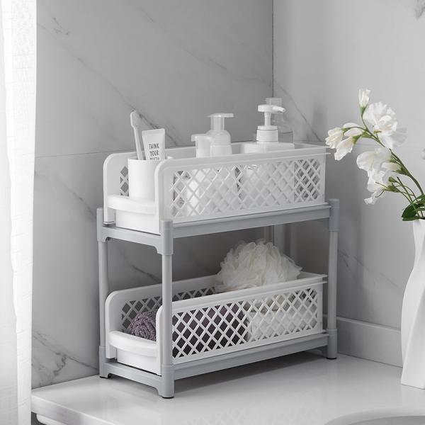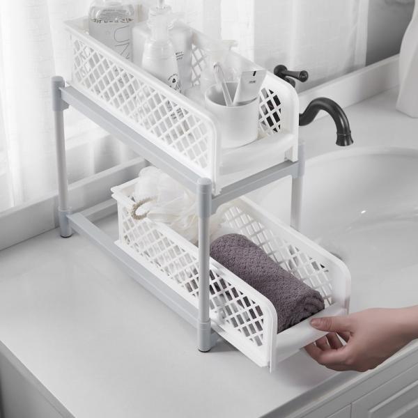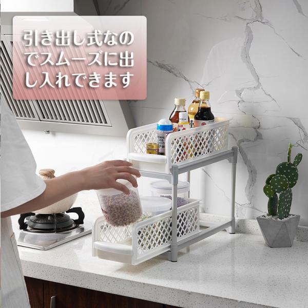 多機能のキッチン収納 シンク下収納ラック 引き出し シンク下 スライド収納 スライドラック 2段ラック 収納棚 入れやすい 組立式 流し台下 洗面台下