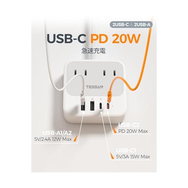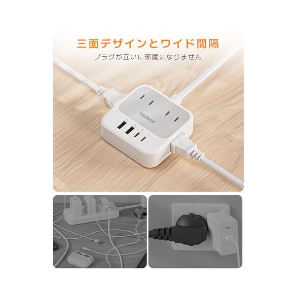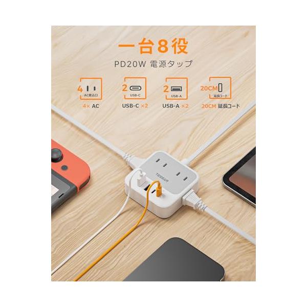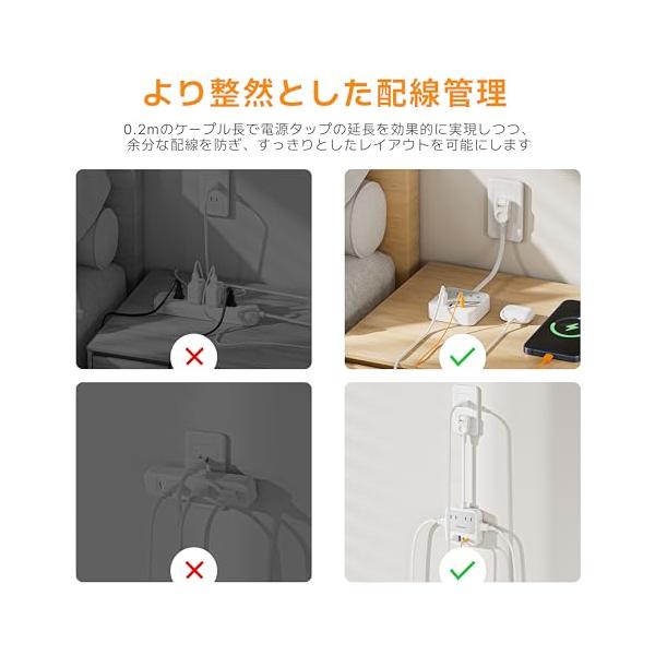 延長コード 短い 20cm 電源タップ usb たこあしコンセント テーブルタップ スイングプラグ 0.2m 超薄型 (8-in-1 20W P