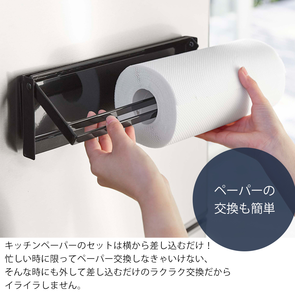 山崎実業 公式 タワー 片手でカット マグネットキッチンペーパーホルダー tower おしゃれ 磁石 切れる 大判 冷蔵庫 壁面収納 4941 4942