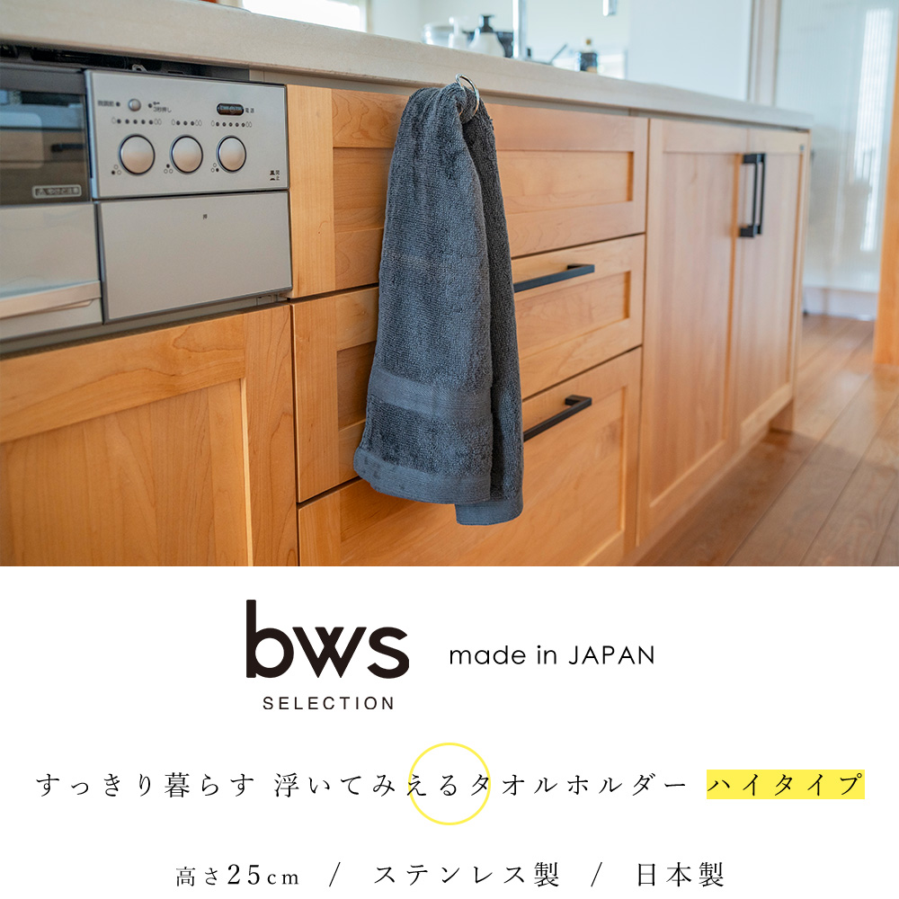 タオルホルダー タオル掛けハンガー ハイタイプ ステンレス 日本製 フック 布巾 袋 シンク下 キッチン 台所 洗面台 ビーワーススタイル