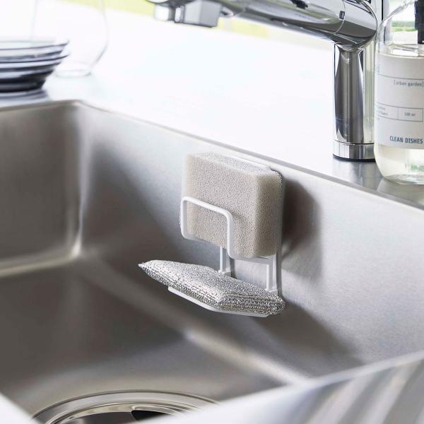 スポンジラック 山崎実業 正規品 TOWER タワー フィルムフックスポンジホルダー ダブル キッチンスポンジ収納 ホワイト