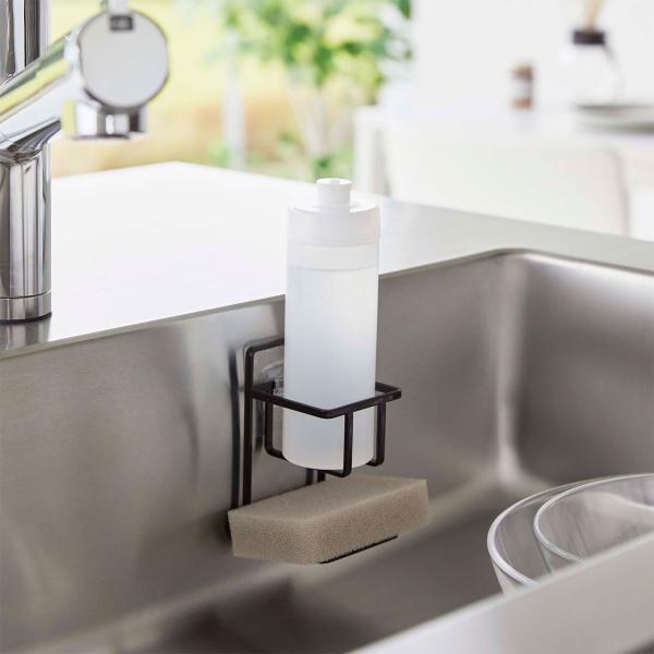 スポンジラック 山崎実業 正規品 TOWER タワー フィルムフックスポンジ&ボトルホルダー キッチンスポンジ収納 ブラック