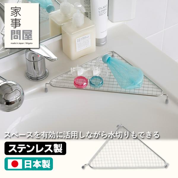 家事問屋 水切りコーナーラック (水切りラック 脚付 スポンジ置き 小物置き 網目 省スペース 日本製 新潟県燕三条)