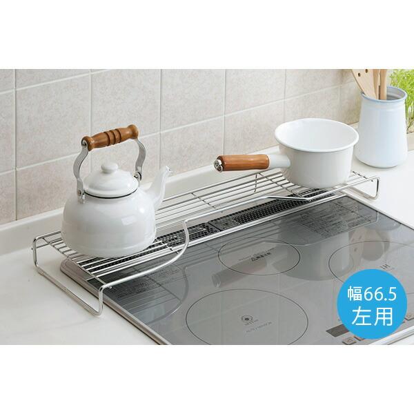ステンレス製コンロ奥ラック W66.5 右用 左用 排気口カバー コンロ台 ステンレス IH対応 隙間 一時置き 燕三条製 ホクリク総業