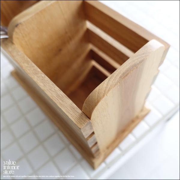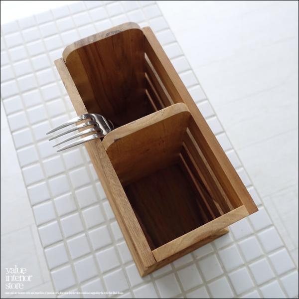 チーク無垢材 カトラリースタンドDoub 箸立て カトラリーホルダー 手づくり ナチュラル キッチン雑貨 マルチホルダー 総無垢材