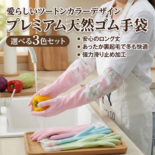 ゴム手袋 ロング 3枚セット 作業用 ロンググローブ ロングスリーブ 丈が長い 食器洗い キッチン掃除 トイレ掃除 浴室掃除 クリーニング 掃除 かわいい おしゃれ