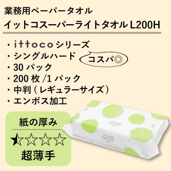 「ポイント最大16倍〜4/15」 ペーパータオル 中判 業務用 30パック 200枚 イットコ スーパーライトタオル L200 ハード 50200041 エンボス加工 無漂白 KS