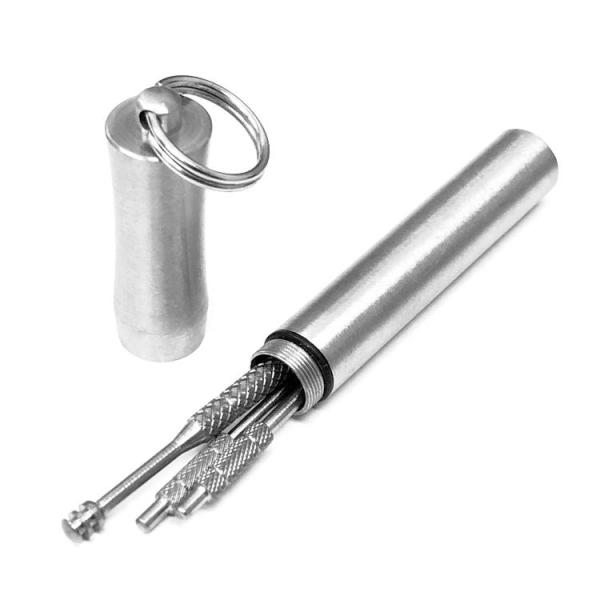 チタン製耳かき&爪楊枝2本セット 携帯用 ステンレス製ケース入り 強度・耐食性抜群 密閉ケース 軽量 エチケット キーホルダー ボタン押し 非接触棒 TOOP3IN1
