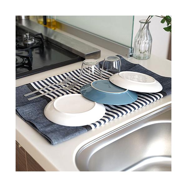 ポスト投函 ジョージ・ジェンセン・ダマスク ABILD ティータオル 約80×50cm ダークブルー キッチンタオル 北欧 ループ付 吸水 速乾 大判 水切りマット
