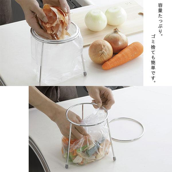 家事問屋 ゴミ袋ホルダー(三角コーナー 水回り ステンレス 燕三条 キッチン用品 ゴミ受け ダストボックス ゴミ箱 簡易 ゴミ袋スタンド)