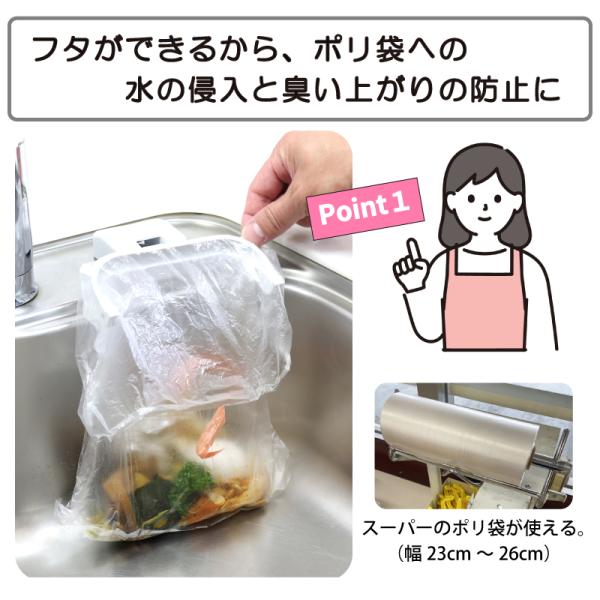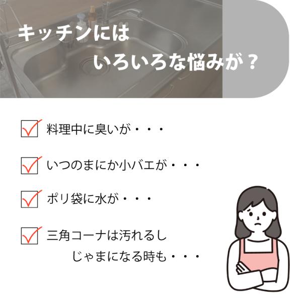 キッチン用ゴミ袋ホルダ−水切りネットも 浮かせる 折りたたみ 省スペース 臭気防止 吸盤式 三角コーナーいらず LKM0012 爆買