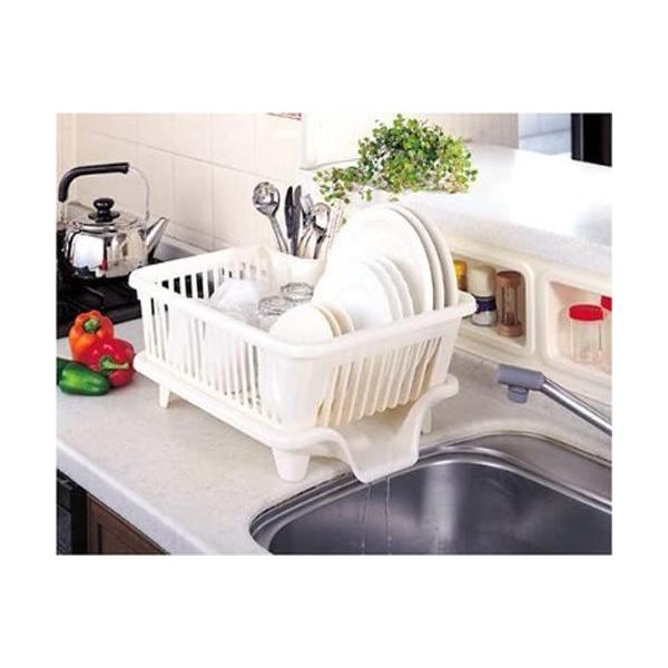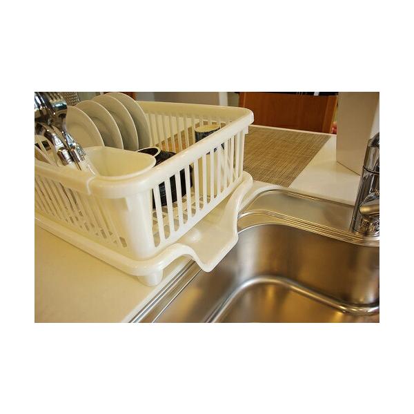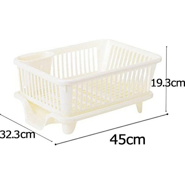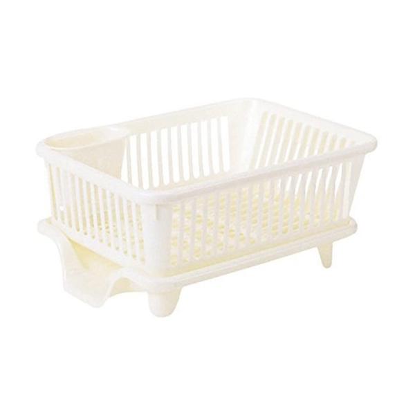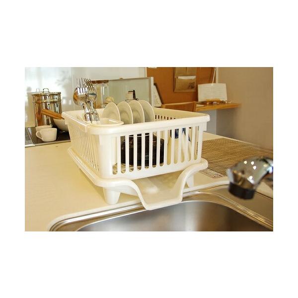 水切りかご 水切りラック 皿立て水切り 流 No.2 サンコープラスチック 日本製 横型 箸立て付き パールホワイト