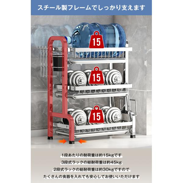 水切りラック 2段/3段 ステンレス 水切りかご 大容量 食器 水切り 省スペース 食器ラック 箸立て 包丁立て まな板立て トレー付き キッチン収納 爆買