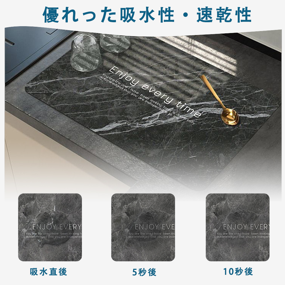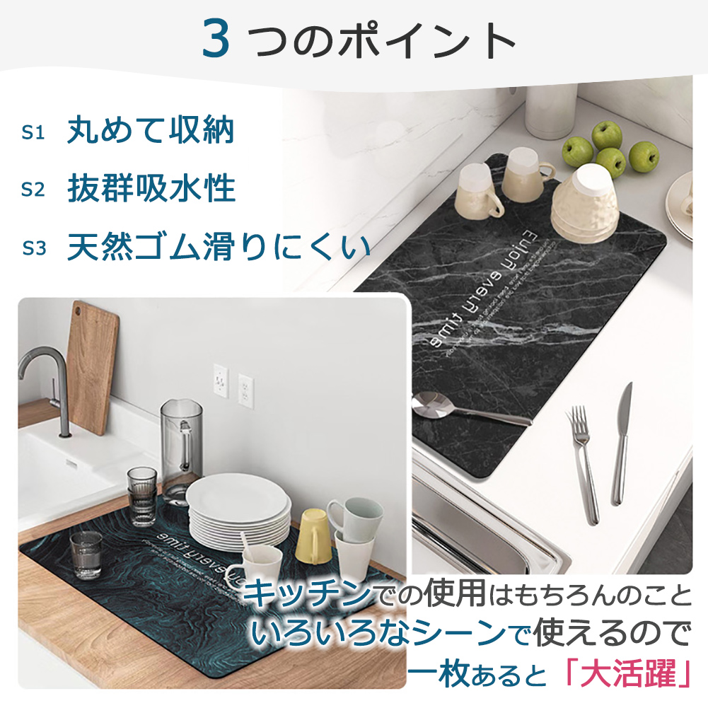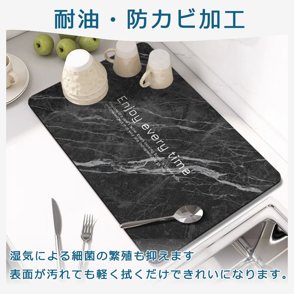 水切りマット 珪藻土 大理石模様 抗菌 速乾吸水マット 食器乾燥マット 丸めて収納 キッチン 滑り止 皿置き シンクマット 棚シート 速乾性 隔熱 お手入れ簡単