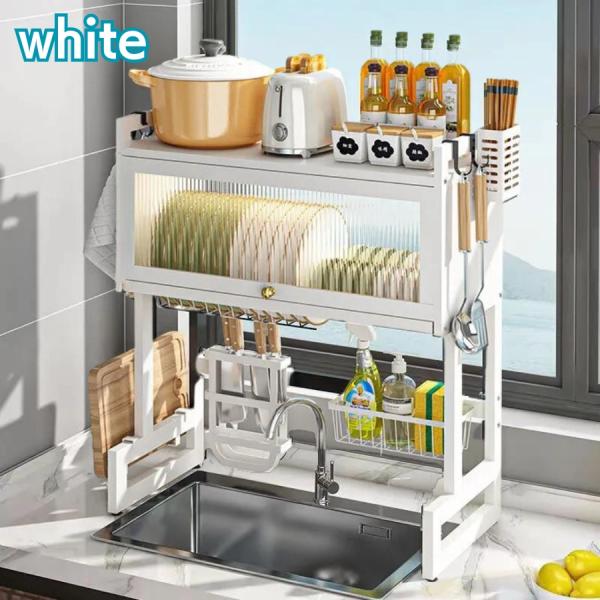 水切りラック シンク上 大容量 2段式食器乾燥 キッチンドレイナー 収納棚 省スペース