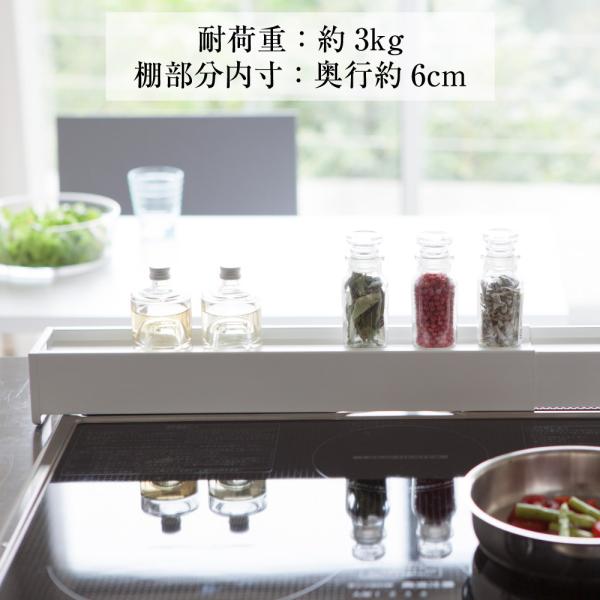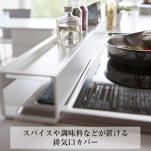 棚付き伸縮排気口カバー プレート ホワイト 山崎実業 キッチン おしゃれ ラック 棚 カバー 伸び 縮み サイズ 可変 便利