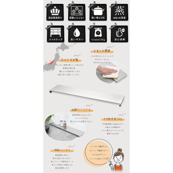 排気口カバー ロータイプ フラット スマート 75cm 用 IH ガス コンロ ステンレス 燕三条 日本製 薄型 コンロカバー レンジガード コンロ奥カバー グリルカバー