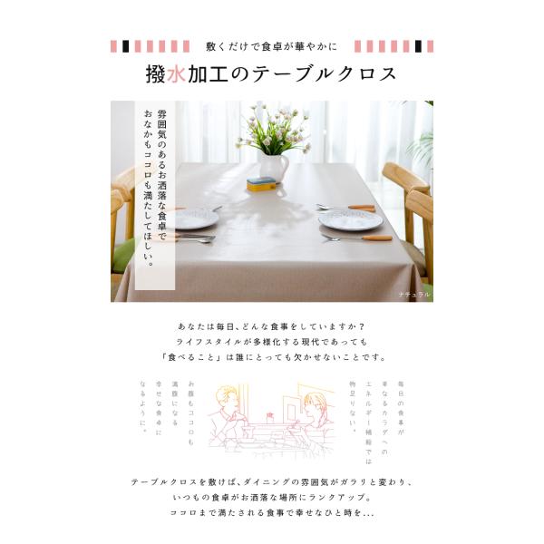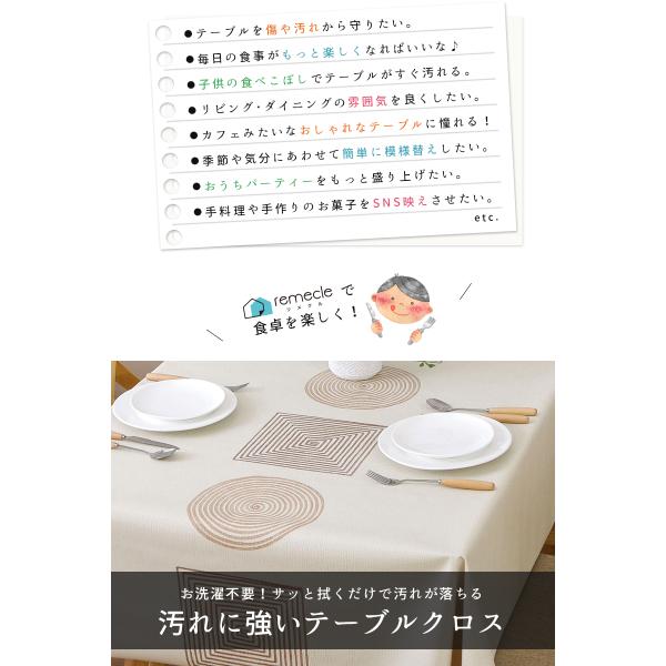 テーブルクロス Mサイズ ビニール おしゃれ pvc 北欧 撥水 花柄 無地 汚れ防止 シンプル モノトーン リビング ダイニング 137cm×185cm 「meru」