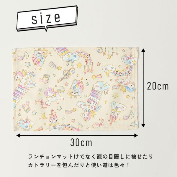 ランチョンマット 子供 小学校 おしゃれ 北欧 布 キッズランチョンマット 30×20cm ユニコーン 日本製 fabrizm 幼稚園 保育園 ティーマット 吸水