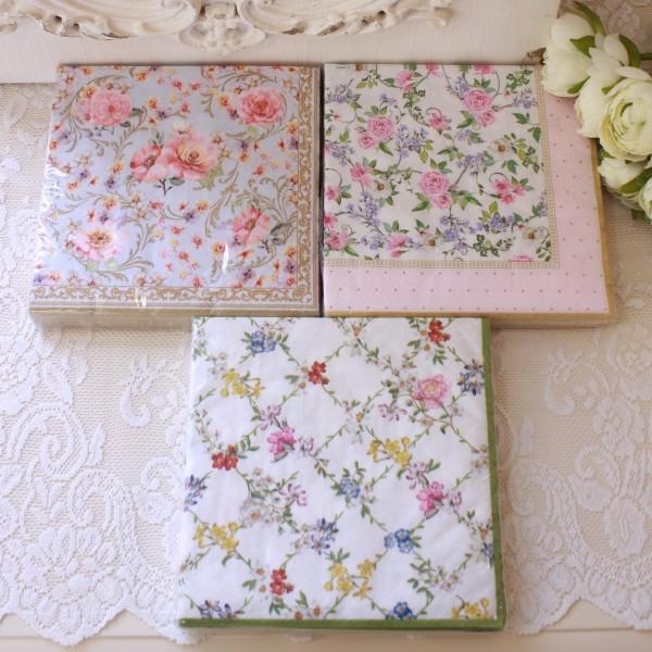 ペーパーナプキン 紙ナプキン ドイツ製 33cm角 ナプキン アフタヌーンティー 花柄 薔薇 ローズ ヨーロピアン シャビーシック フレンチシャビー ブロカント フ