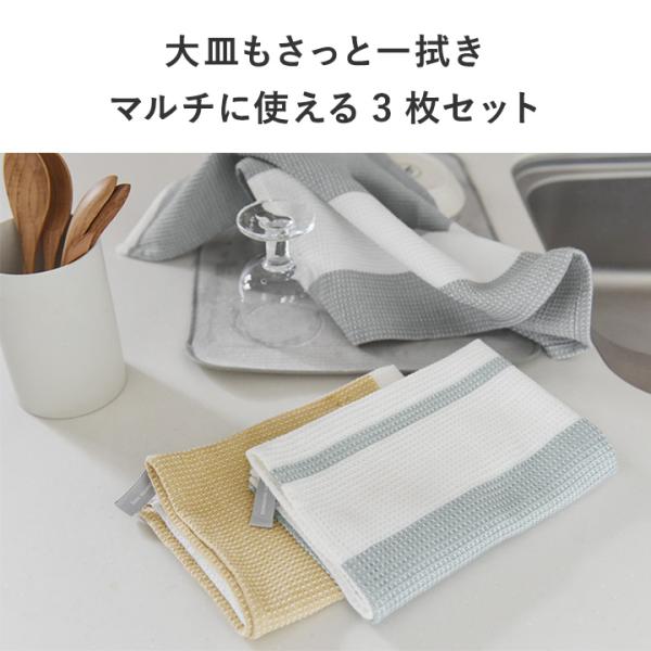 3枚SET 特別PRICE 布巾 ふきん 綿 ワッフル織り たっぷり拭けるキッチンクロス yrh bon moment ボンモマン