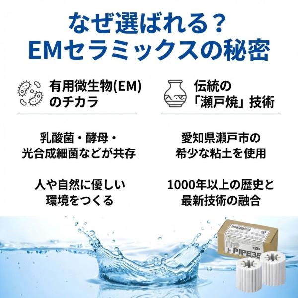 EMセラミックス 2個入 PIPE35 浄水 酸化防止 瀬戸焼 日本製 節約 飲料水 揚げ物 油 お風呂 トイレ 消臭 炊飯 美味しい水 水質改善 半永久的 塩素除去 送料無料