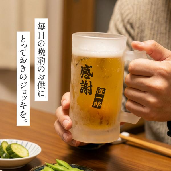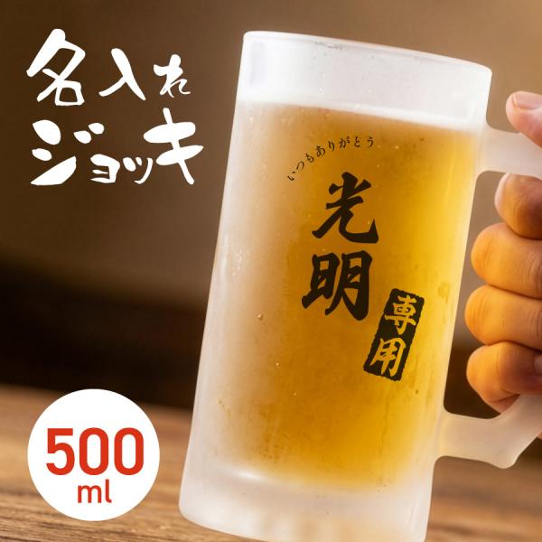 ビールジョッキ 名前入り 名入れ メッセージ ハンコデザイン 500ml ジョッキ グラス コップ ビール 中ジョッキ ガラス 取っ手付き 名前入れ 名入り オリジナル