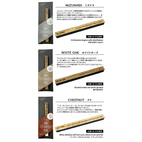 CASK RICH STICK 樽芳醇棒 選べる3本セット (ミズナラ ホワイトオーク クリ メープル ヤマザクラ 樽熟成 フレーバー オーク材) メール便無料
