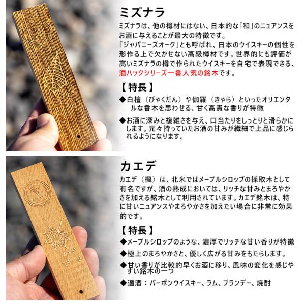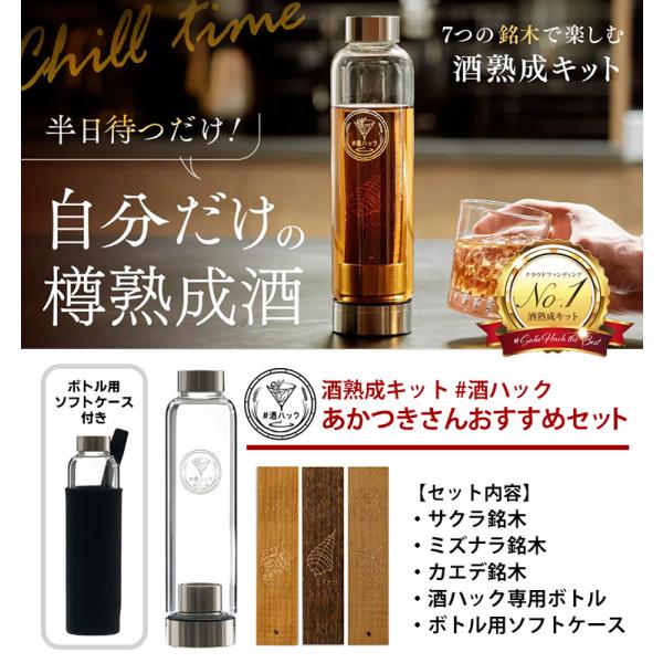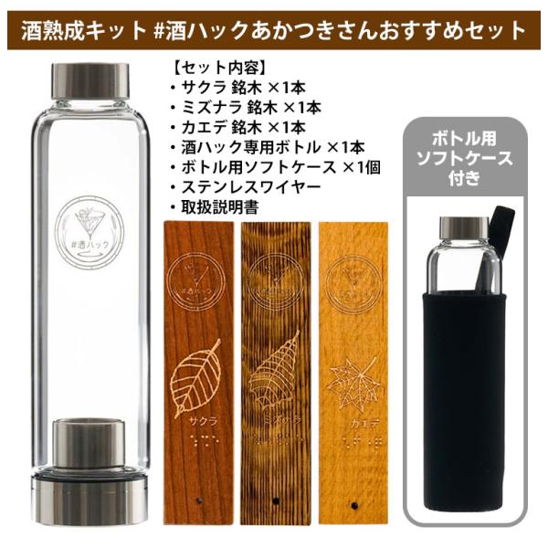 酒熟成キット #酒ハック あかつきさんおすすめセット (国産銘木3種 サクラ・ミズナラ・カエデ 専用ボトル付 樽熟成)