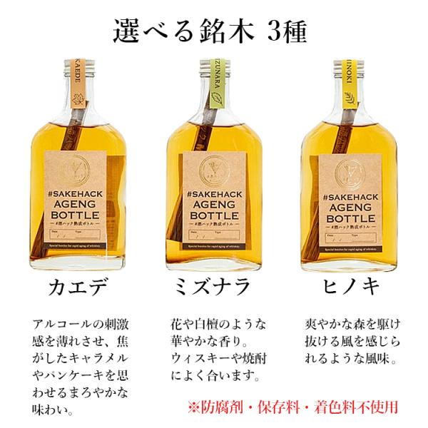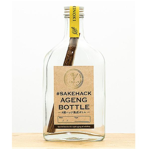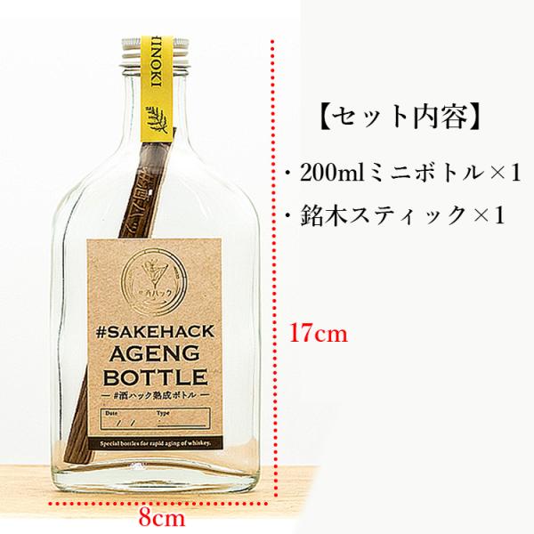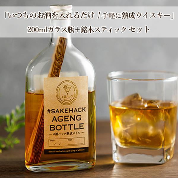 #酒ハック セット商品 熟成ボトル200ml+銘木スティック(ミズナラ カエデ ヒノキ) (サケハック お酒 酒 ウイスキー 焼酎 熟成 スティック お酒)